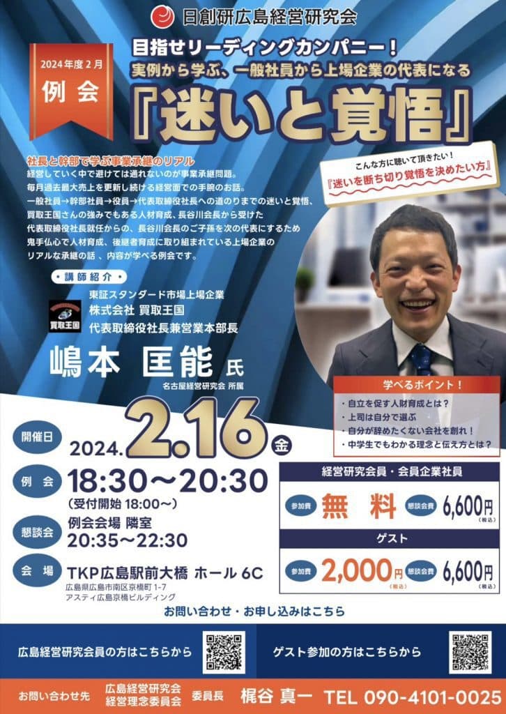 一般社員→幹部社員→役員→代表取締役社長への道のりを 『迷いと覚悟』の講話から学ぶ。
